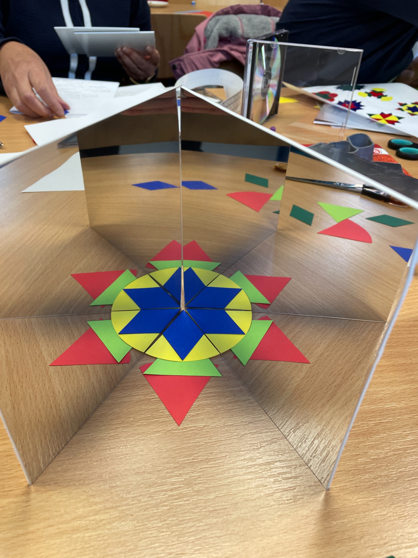 Kdo je nejkrásnější nevíme, ale jinak jsme zrcadla prozkoumali důkladně. Začli jsme s jedním zrcadlem: zkusili jsme se podepsat, napsat smysluplné slovo a projít bludištěm. K rozmyšlení, kde a jaký má zrcadlo obraz, nám pomohla krabička od CD jako polopropustné zrcadlo. Pak jsme přešli ke dvěma zrcadlům s různými úhly, vymysleli jsme princip...